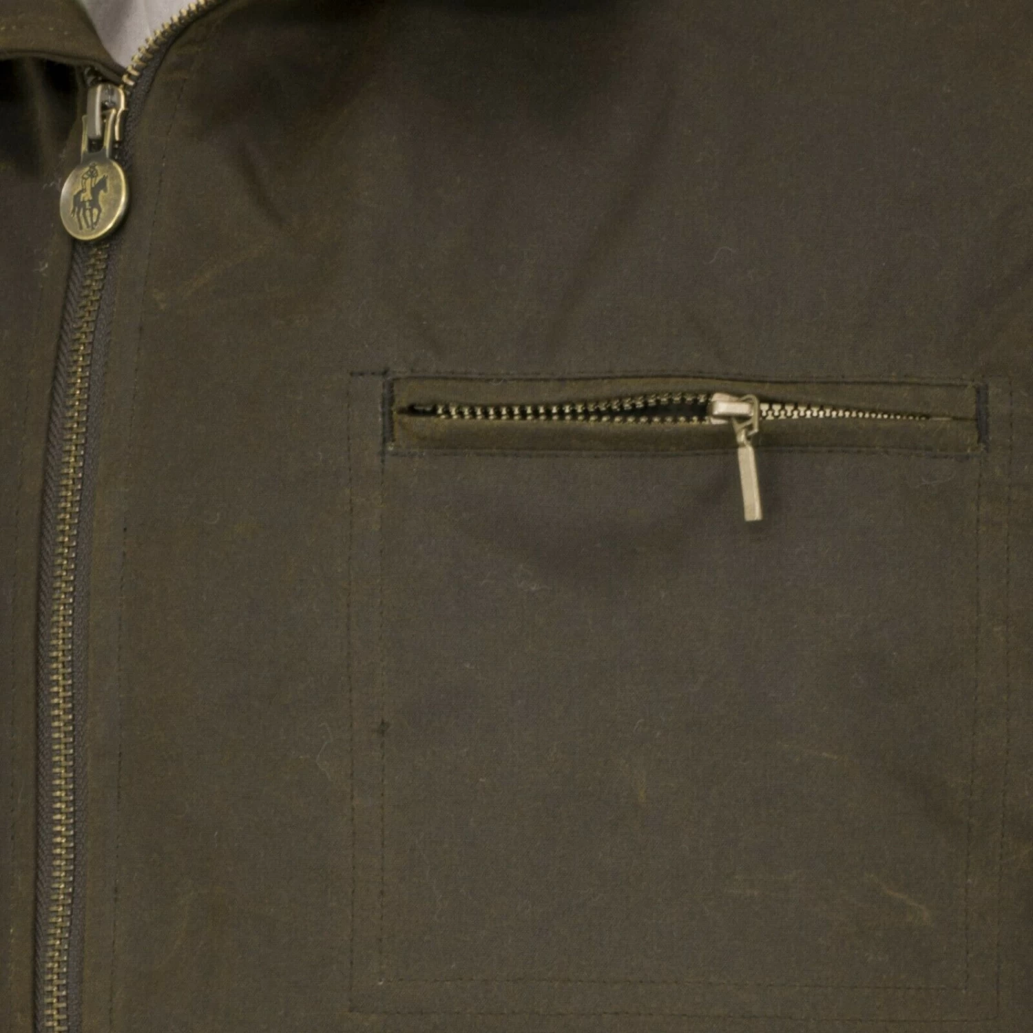- Brass full-zip closure.