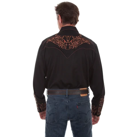 Be the first to review “Scully® Men’s Tribull Embroidered Black Western Snap Shirt P-884-BLK” Cancel reply